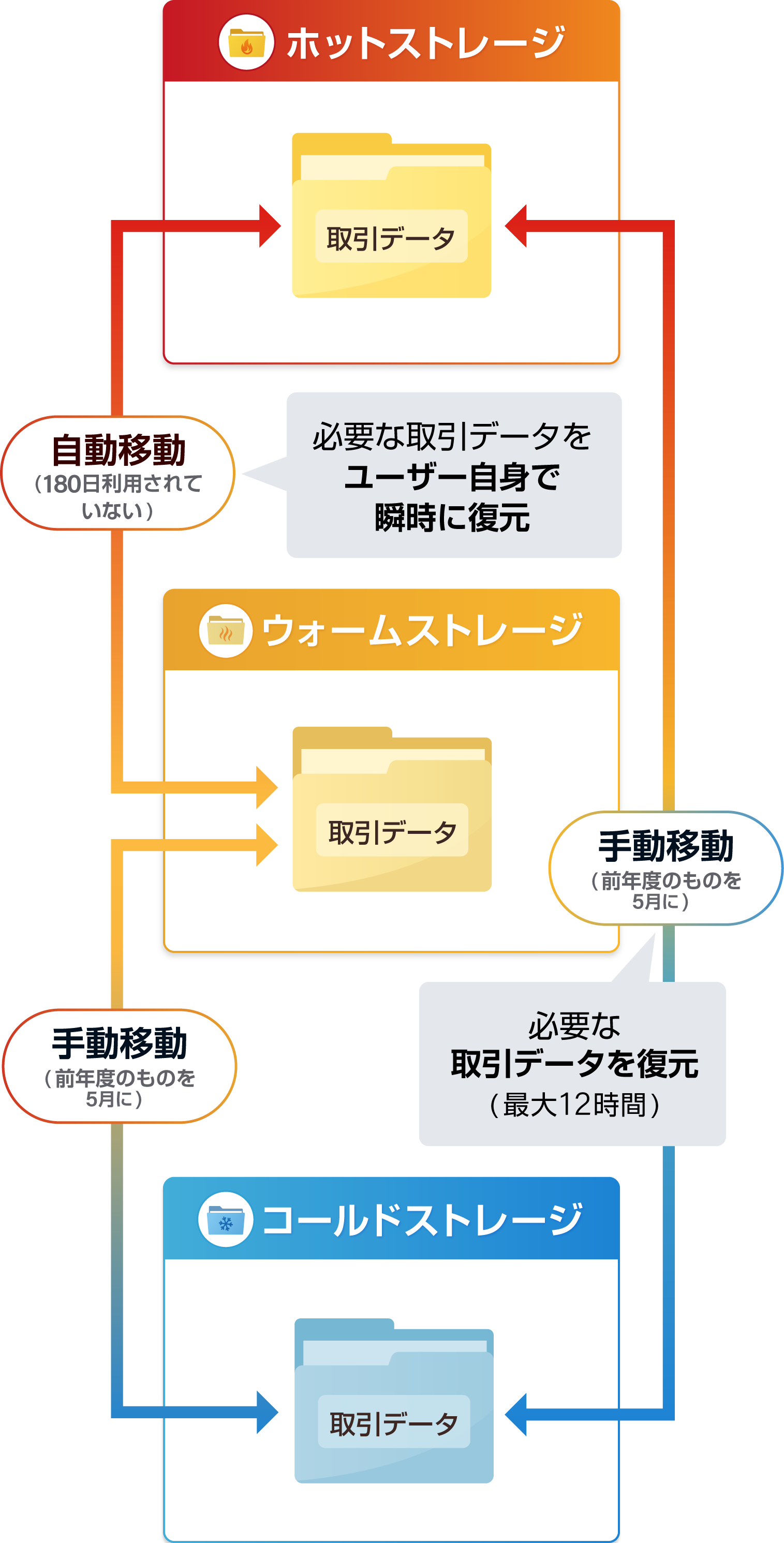 コールドストレージに自動移動し、