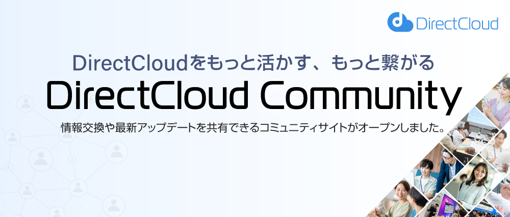 本コミュニティは「DirectCloudをもっと活かす、もっと繋がる」をコンセプトに、ユーザー同士が活用ノウハウを共有し、疑問を解決し、より高度なファイル共有環境を実現するための“共創型プラットフォーム”です。